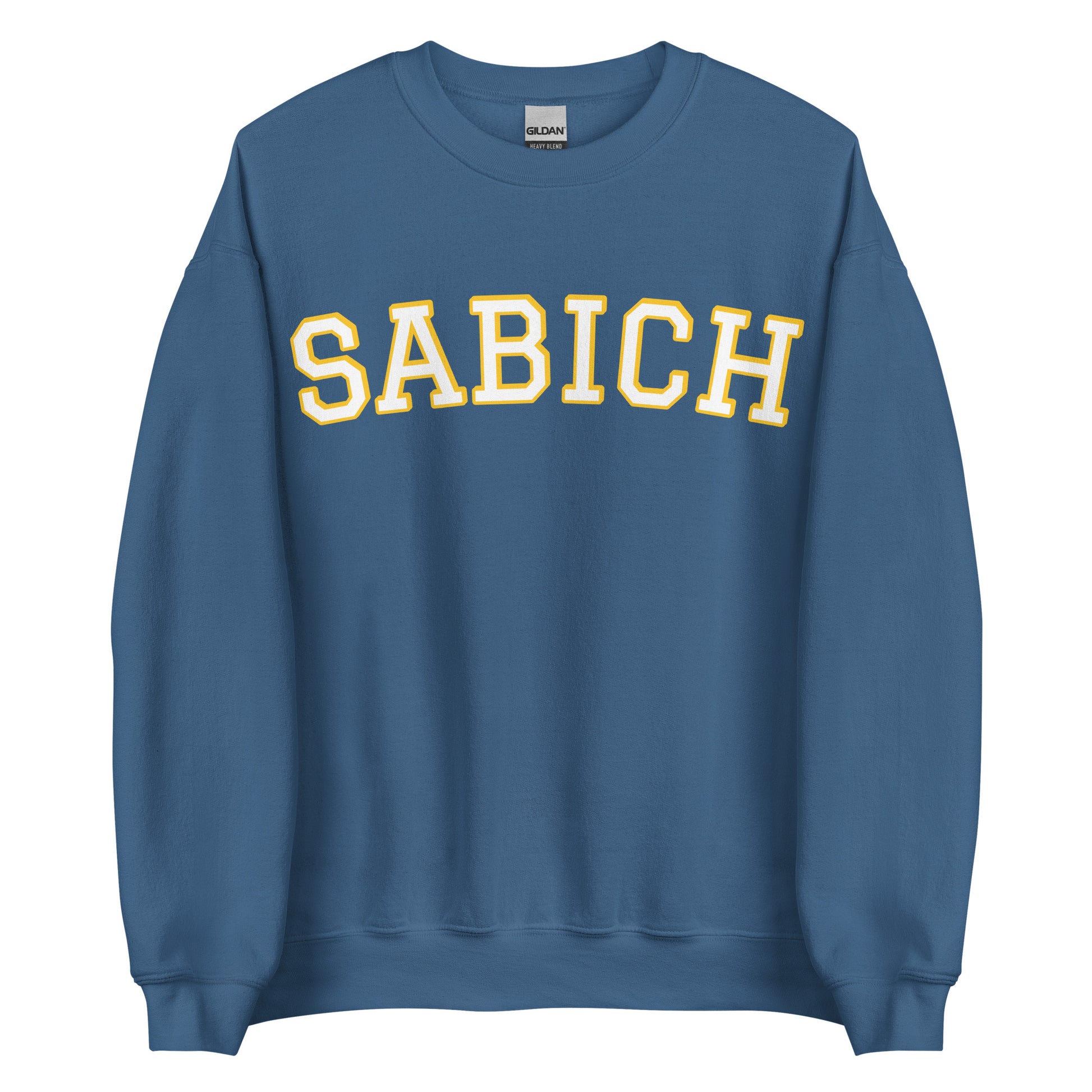 Our "Sabich" Varsity Sweatshirt is super soft, cozy and expertly printed just for you. It's a unisex, crewneck sweatshirt for Sabich enthusiasts and Middle Eastern Foodies of all kinds!